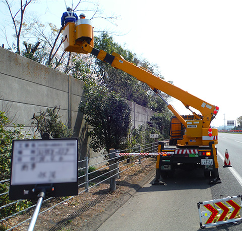 高速道路の樹木剪定・伐採、草刈り、防草工事、道路清掃等、路面補修工事などの維持管理事業をはじめ、