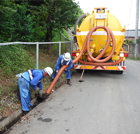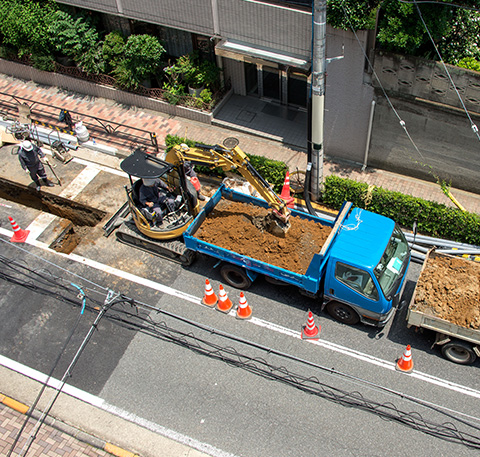 事故復旧工事、災害普及工事などの緊急補修工事を行っております。